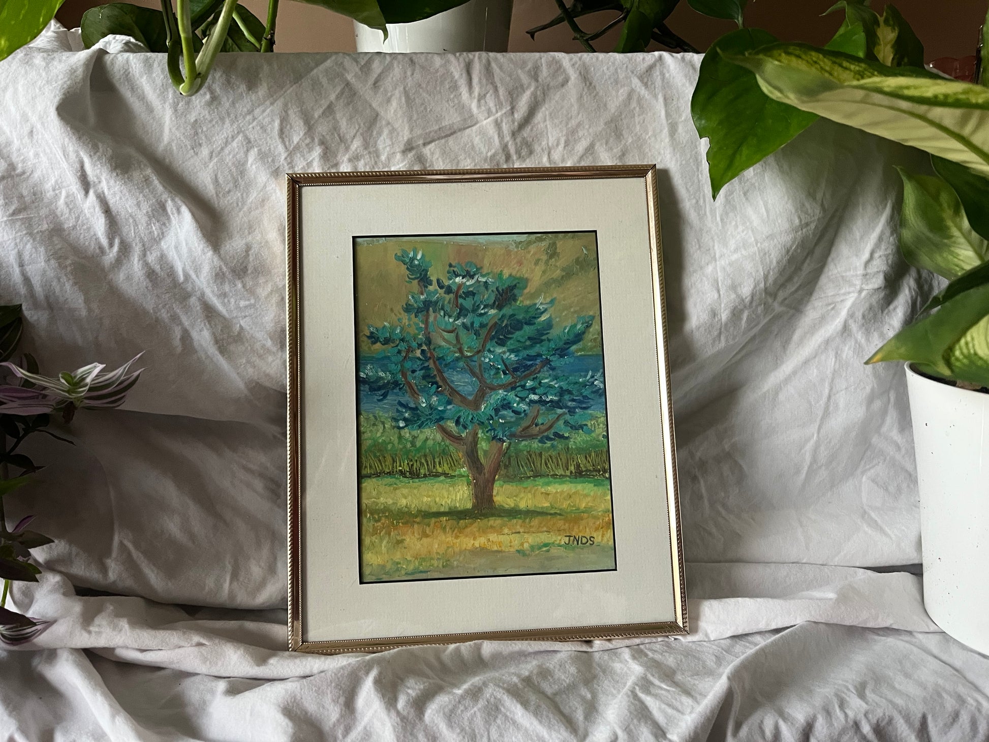 Painted en plein air (outside on location) in oil pastel during a camping trip. This fine art shows off with beautiful impasto brush strokes making it a visual delight.